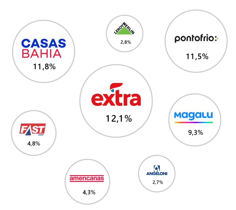 Veja as principais lojas do segmento, com dados de participação sobre o número de ofertas (considerando dados 1p e 3p).